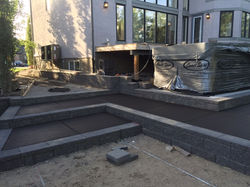 ![]() Walkout PatioAshler slate pattern with tan colour and brown accents. | ![]() Side by Side Garage Pads8 inch pony walls and apron. Poured all at once (monoslab). |